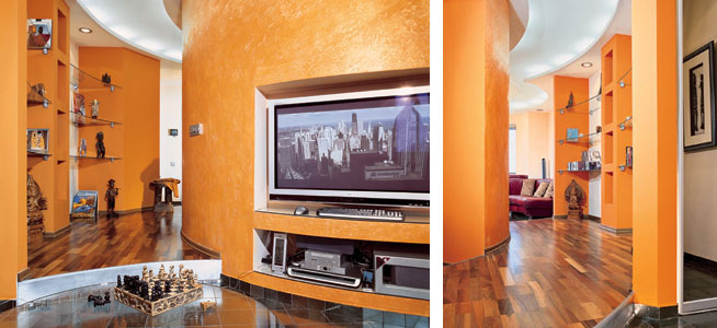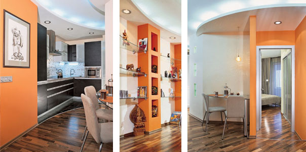 Квартира, о которой пойдет речь, - плод совместного творчества архитектора и ее владельца, который определил основную особенность планировки. Он сказал: "Главное, чтобы отсутствовали прямые углы. Округлые линии внесут в дом спокойную атмосферу и естественность. А перетекание формы и пространства, подобно непрерывному движению по ленте Мебиуса, придаст помещениям динамизм". Жилому объему надлежало превратиться в единое целое, где одна зона плавно сменяла бы другую, сохраняя желаемое ощущение непрерывного движения. Архитектору предстояло создать некий микрокосм с центром притяжения - ядром и периферией - энергетическими орбитами для перемещения.