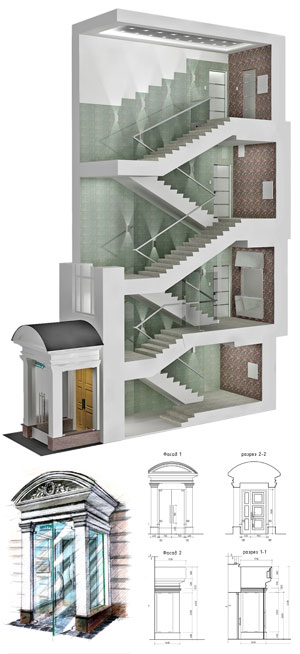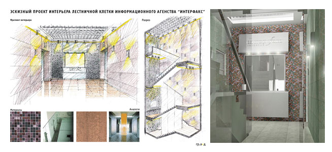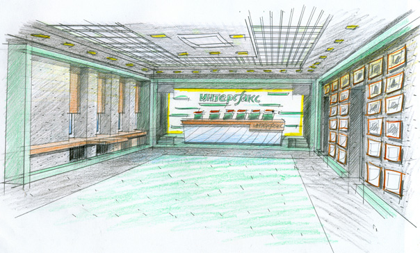Архитектурно-дизайнерские решения по реновации интерьера зоны пресс-центра, входной группы и лестницы для VIP-гостей информационного агентства «Интерфакс».